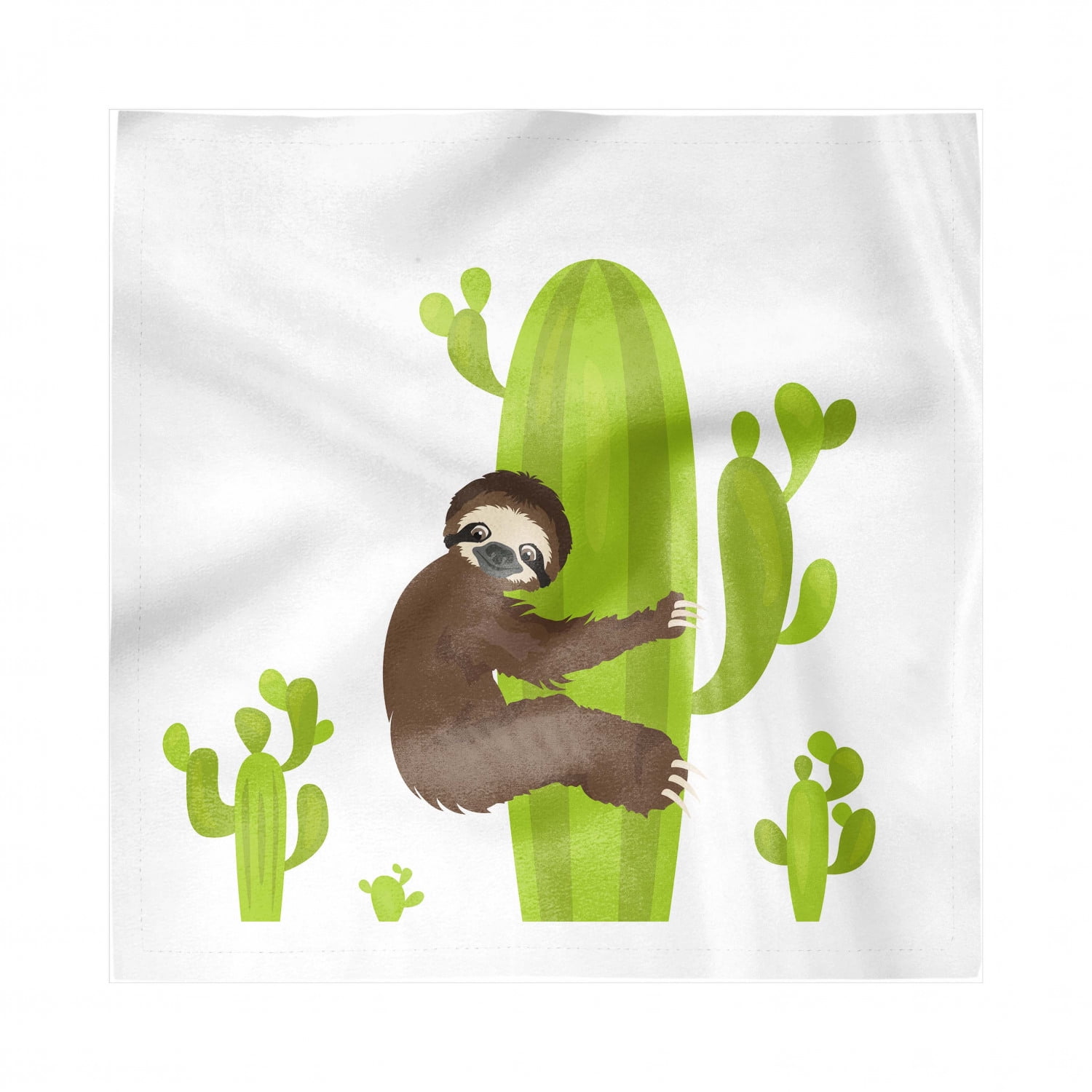 Funny Sloth Decorative Satin Napkins Set Of 4 Lazy Animal Hugging A Cactus In Desert Witty Humor Illustration Square Fabric Party Dinner Napkin 12 Umber Apple Green Beige By Ambesonne